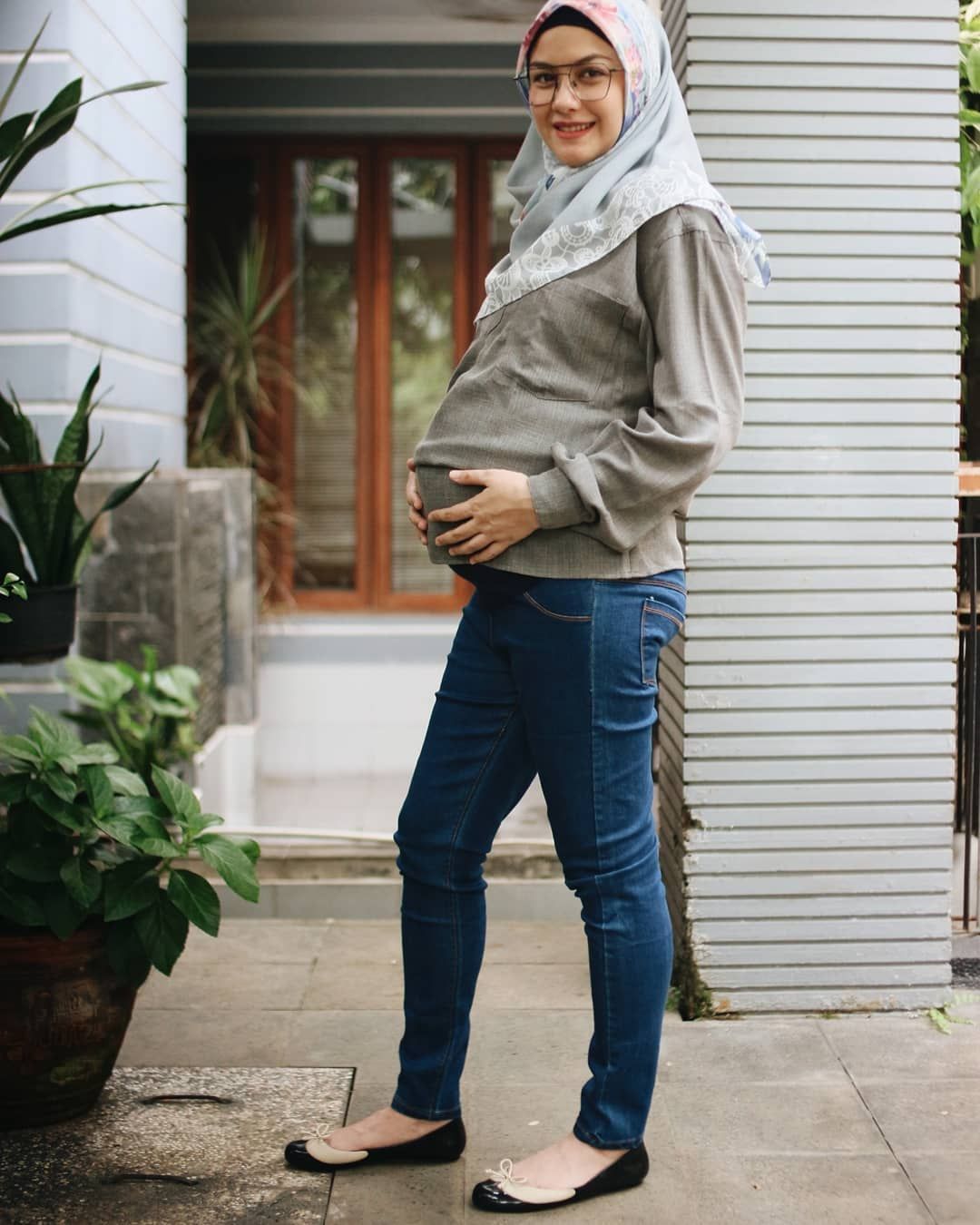 10 Inspirasi Outfit Berhijab Ibu Hamil Ala Seleb Bisa Kamu Tiru